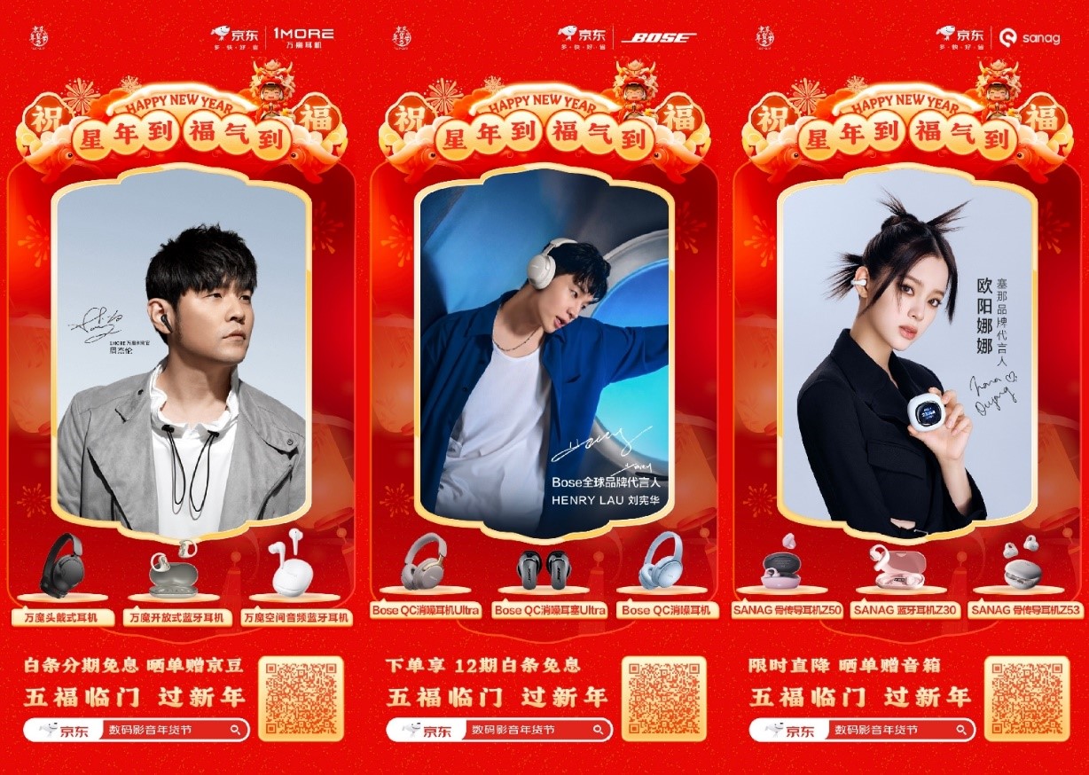 新年到,福气到。为帮助大众省心买到实惠好年货,将福气、好运和祝福传递给亲朋好友,京东数码影音年货节已火热开启。1月30日,京东联合陈建斌、刘宪华、马伯骞、欧阳娜娜、任贤齐、汪峰、乌兰图雅、吴艳妮、于适和周杰伦十位明星大咖,带来松典、Bose、PlayStation、塞那、Cleer、FIIL、曼龙、Oladance、JBL、万魔数码影音大牌好物,为你送来新年福气!