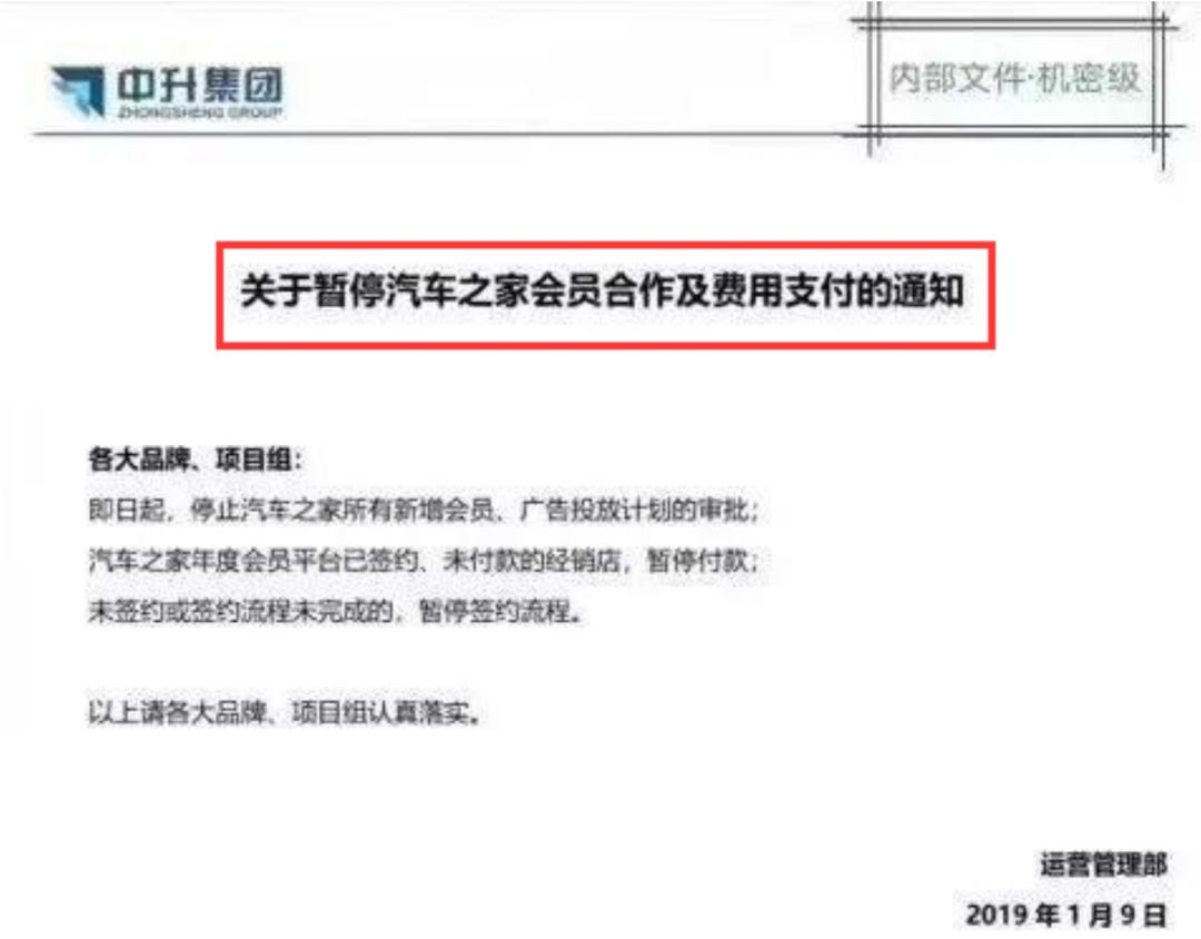原来汽车之家2019年的会员费又涨价了,而作为汽车之家大客户中升集团这回不干了。于是一份来自中升集团的内部文件把汽车之家的涨价风波给迅速点燃了。