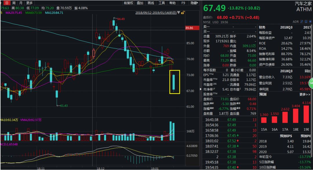 于是,1月14日,在新一周股市开盘交易的第一天,汽车之家的股价就快速跳水并持续下跌,最终以67.49美元收盘,当日跌幅高达13.82%。