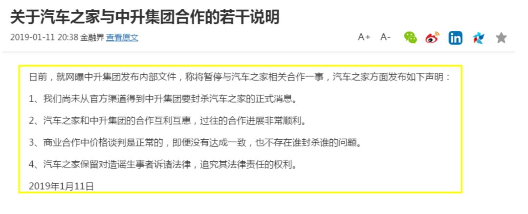 虽然,汽车之家在1月11日发布声明对中升集团的事件予以澄清,但市场显然很不买账。