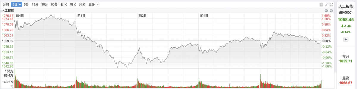 大盘及四大行业二级市场表现(人工智能)