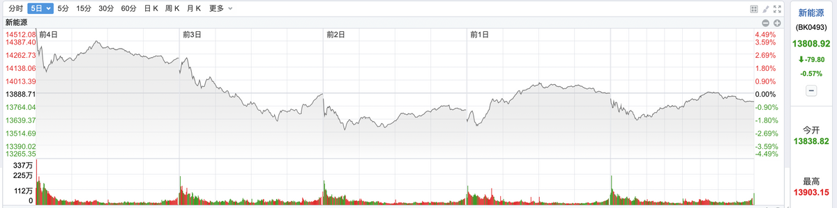 大盘及四大行业二级市场表现(新能源)