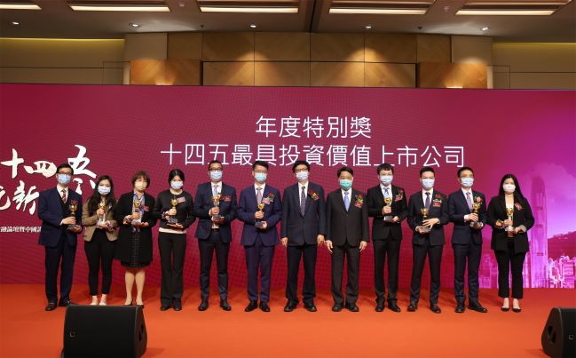 会场公布了“金紫荆奖”获奖公司及企业领袖名单,中国人寿保险股份有限公司(以下简称“中国人寿寿险公司”)在一众参选公司中脱颖而出,最终斩获“最佳上市公司”和“十四五最具投资价值上市公司”奖项,该公司总裁苏恒轩荣获“最佳上市公司 CEO”奖项。