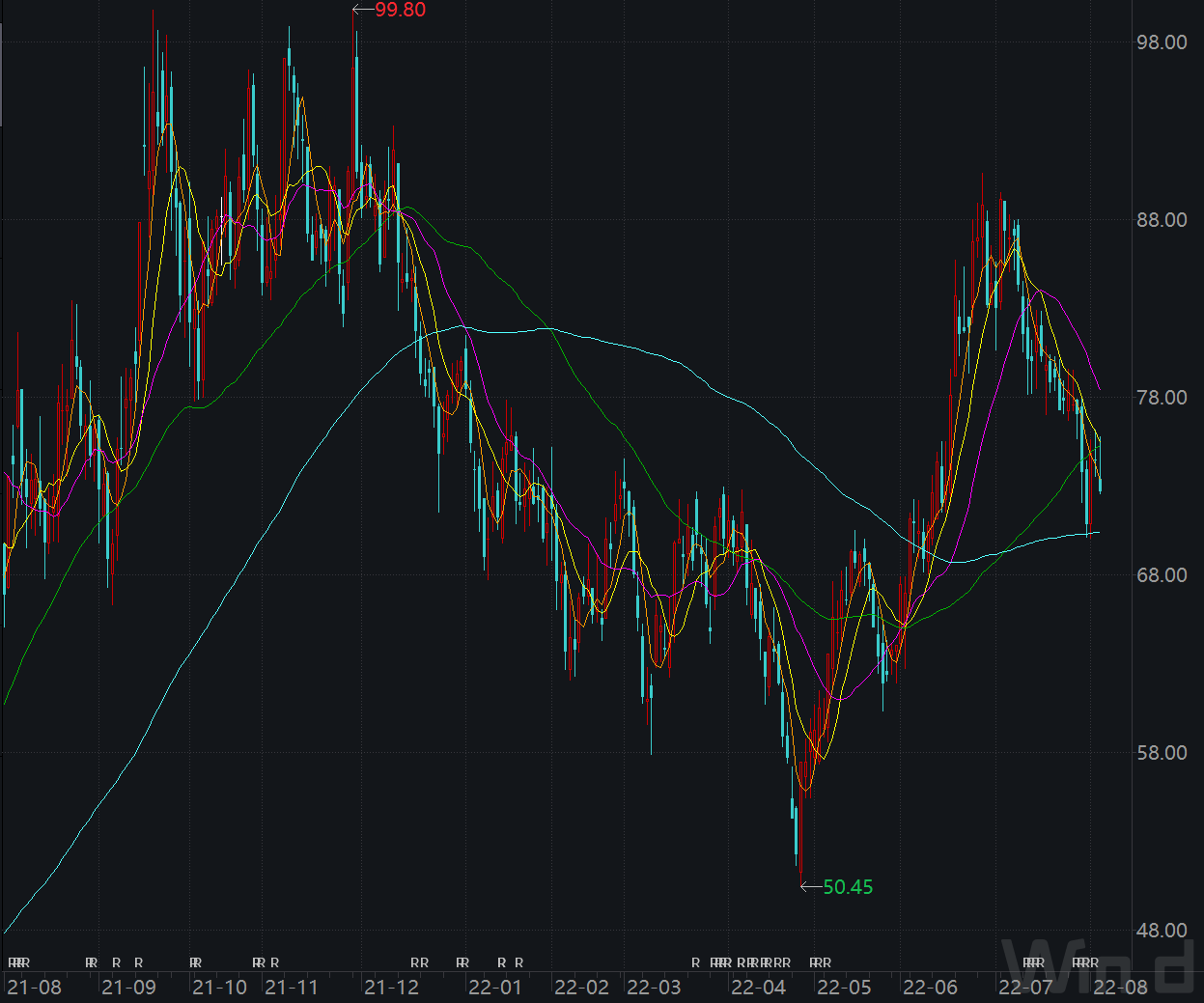 在公司密集发布利好公告之际,璞泰来的股价却遭遇下滑。截至8月3日收盘,璞泰来的股价为72.7元/股,总市值1011亿元,市盈率(TTM)为42.67倍。自7月27日晚间半年报、定增等公告发布以来,璞泰来股价下跌5.58%。