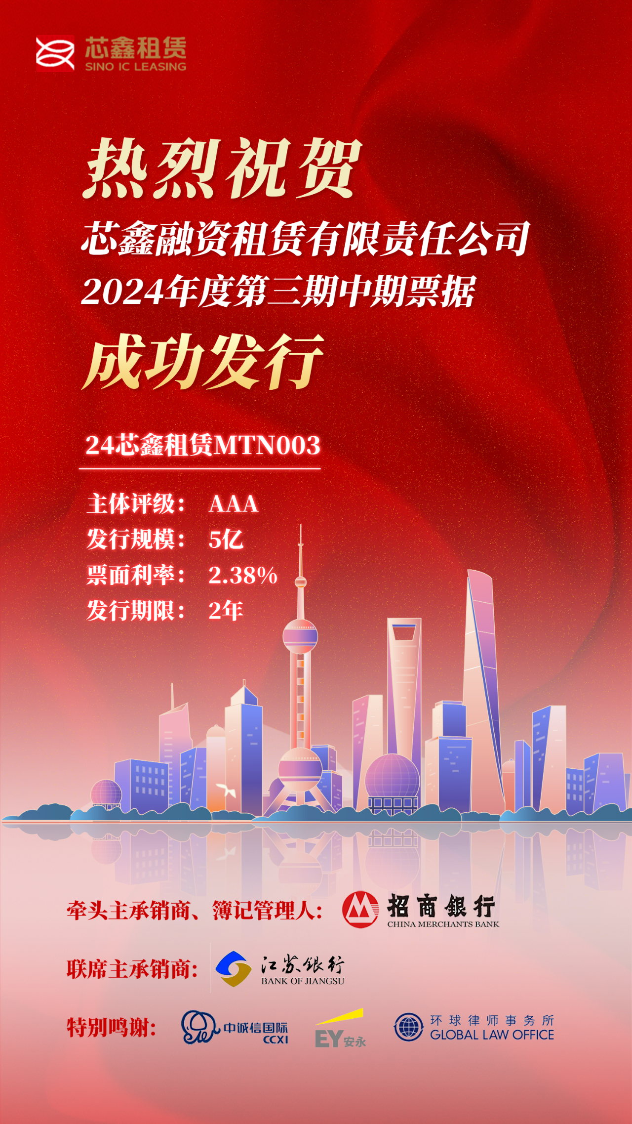 芯鑫融资租赁有限责任公司2024年第三期中期票据成功发行